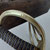 Vergoldetes mehrteiliges Messing Gefäß mit belederter Holzgriffhülse umwickelt von feinem verdrilltem Messingdraht.