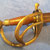 Aus Messing montiertes Gefäß mit 3 Terzspangen. Griffhülse aus Holz mit Fischhaut beledert und dreifachem Messingdraht umwickelt.