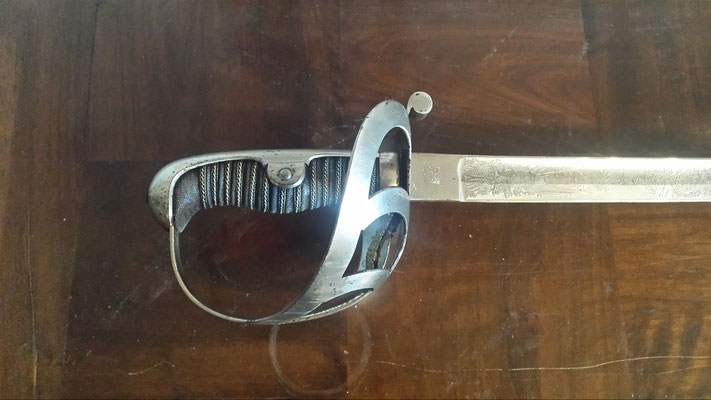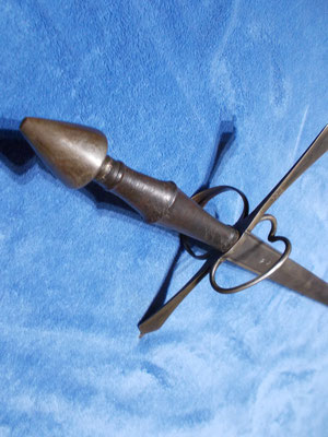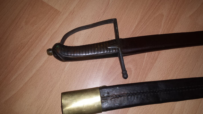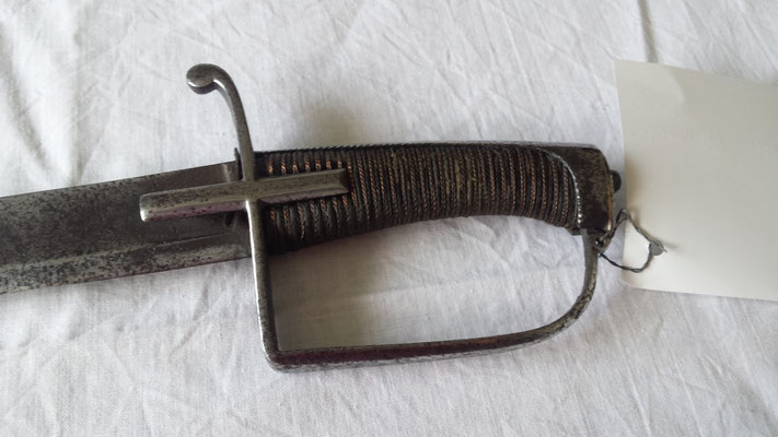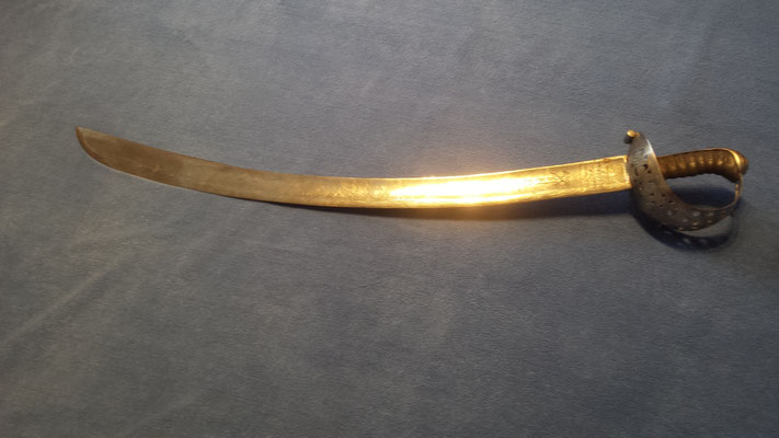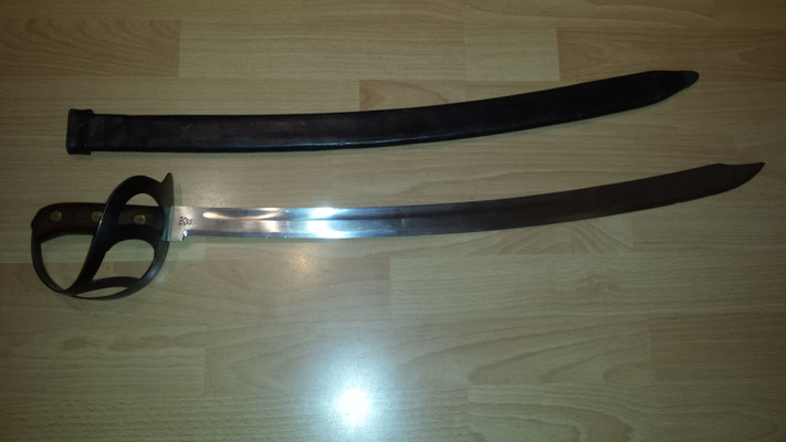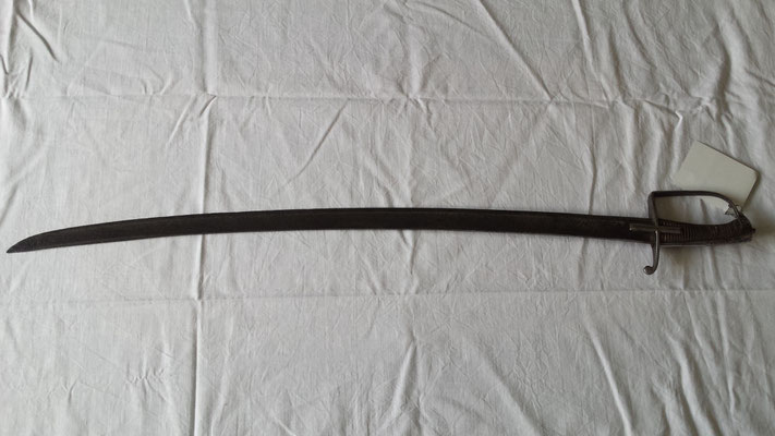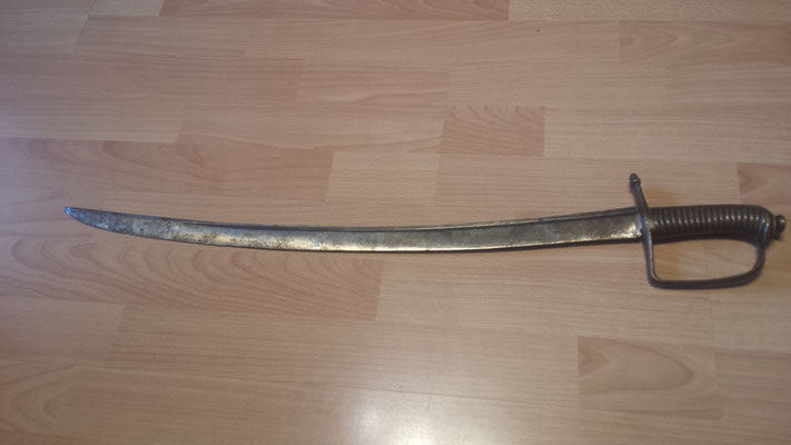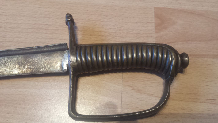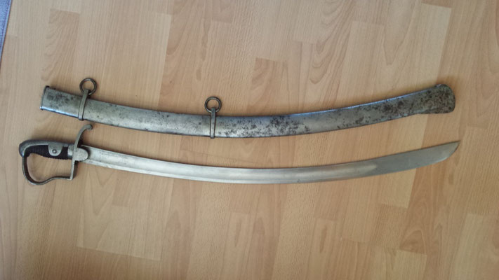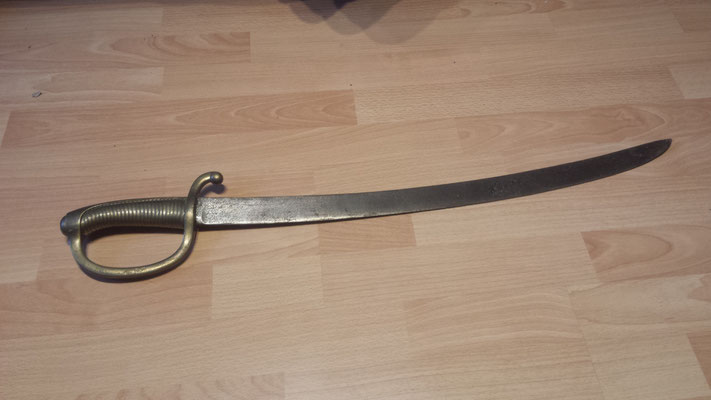 Die Klinge ist meist um die 60cm lang und wenig gekrümmt. Der Ort liegt stets in der Rückenlinie. Unten stehende Beispiele sind links ein M1767 aus Frankreich (oder ein M1794 aus Bayern, kann aufgrund fehlender