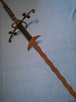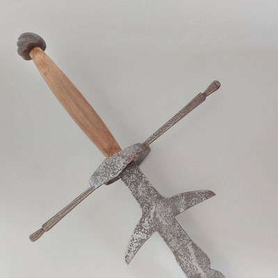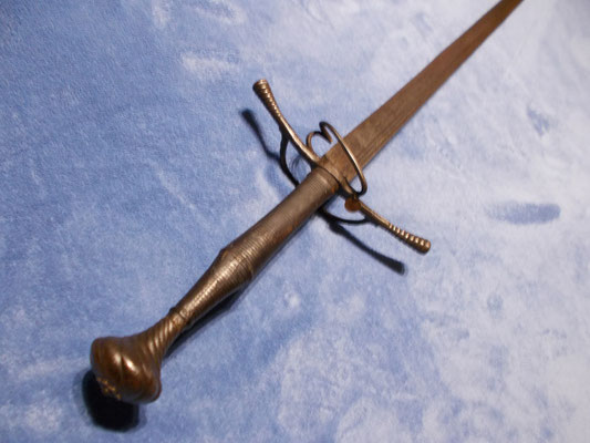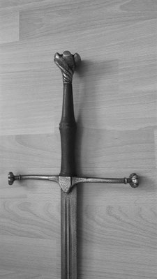 Griffstück: lang genug für eine zweite Hand, jedoch kürzer als beim klassischen Zweihänder