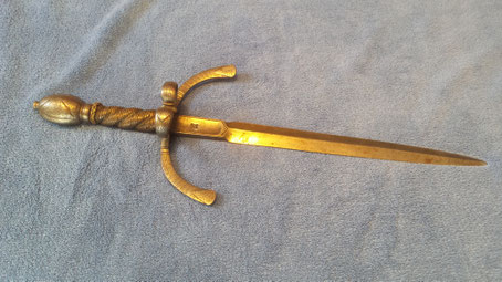 Häufig mit verjüngter Spitze (Spitzklinge) zum Durchdringen von Rüstungen