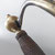 Eisenteile gleichmäßig patiniert und teils Fleckig. Ein Tragering fehlt leider und ein kleines Stück ist aus der hölzernen Griffhüse ausgebrochen. trotzdem insgesamt in gutem original Zustand.