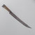 Schwere kurze Klinge mit beidseitigen Rückenzügen. Am Gefäß wurde der Daumenring entfernt! Griffwicklung recht aufwendig mit Türkenbünden. Klinge etwas fleckig und schartig.